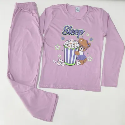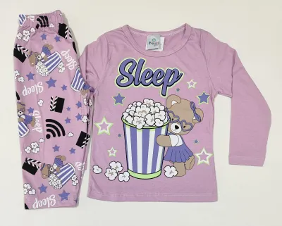 Pijama infantil lilás com ursinho