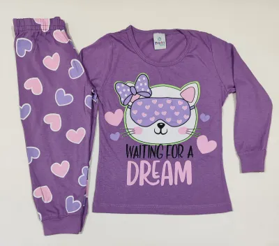 Pijama infantil roxo com corações