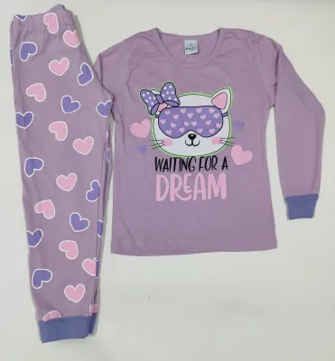 Pijama infantil lilás com corações
