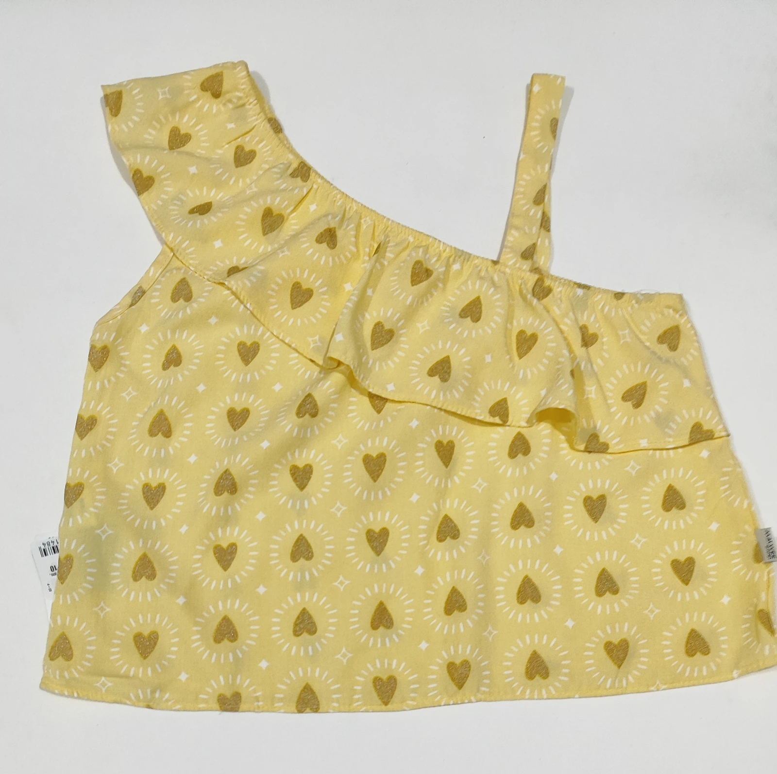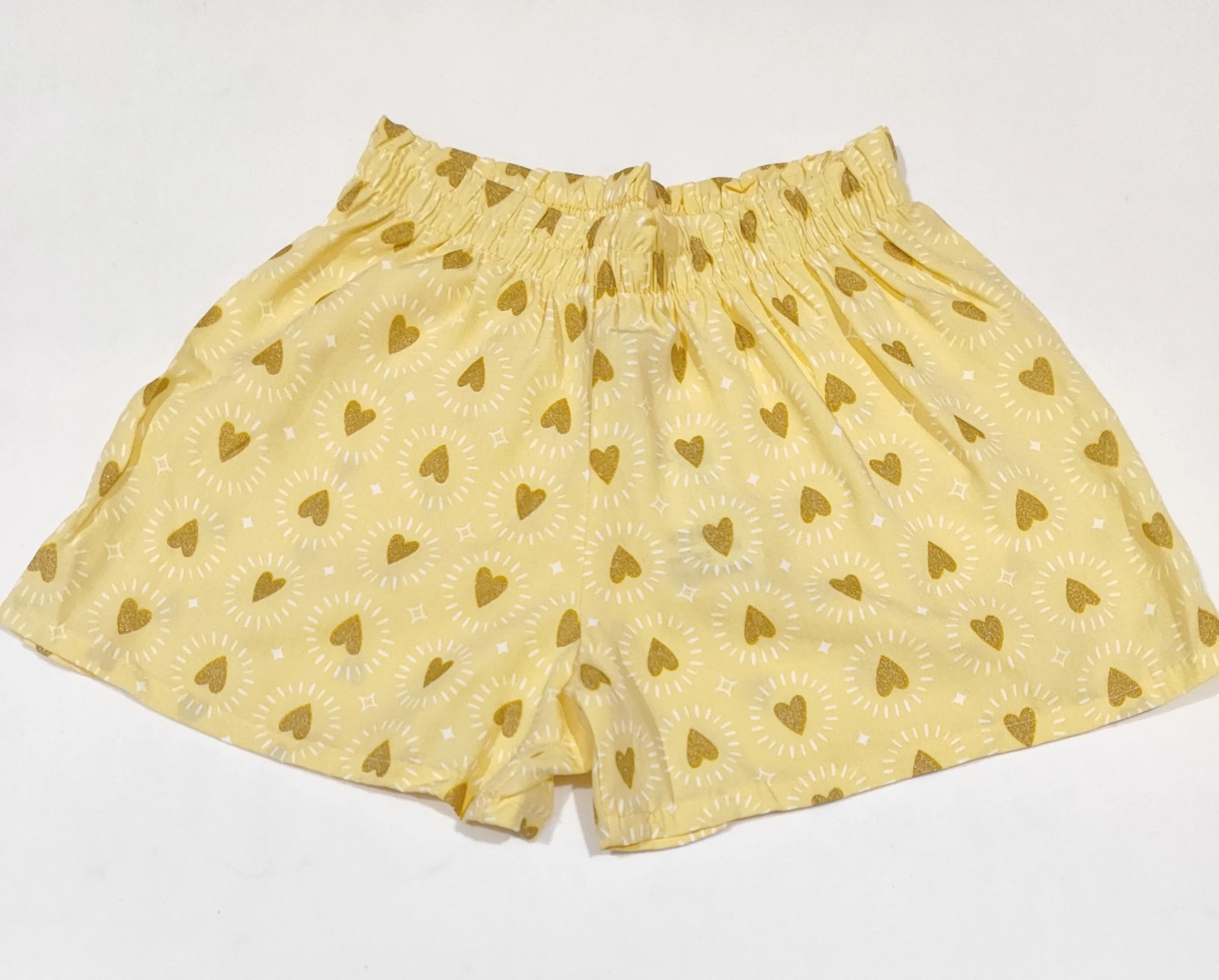Conjunto infantil de duas peças em tecido macio e respirável. Blusa ombro a ombro com babado e Shorts com cós elástico, ambos na charmosa estampa amarela com corações e raios. Conforto o dia todo com toque suave, acabamento de qualidade e fácil cuidado. Perfeito para verão, brincadeiras, passeio e momentos em família — prática, bonita e confortável para meninas ativas.