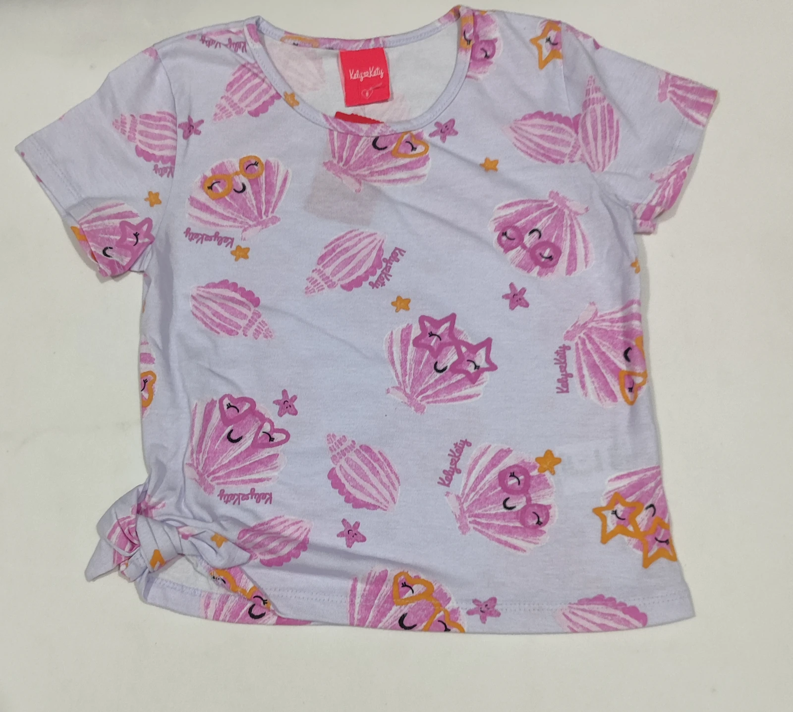 Conjunto Infantil T-Shirt e Short Rosa — conforto e estilo para ela aproveitar o dia. Camiseta em algodão macio com estampa divertida de conchas e estrelas em lilás e rosa, combinando com Short pink de cintura elástica para ajuste perfeito.
