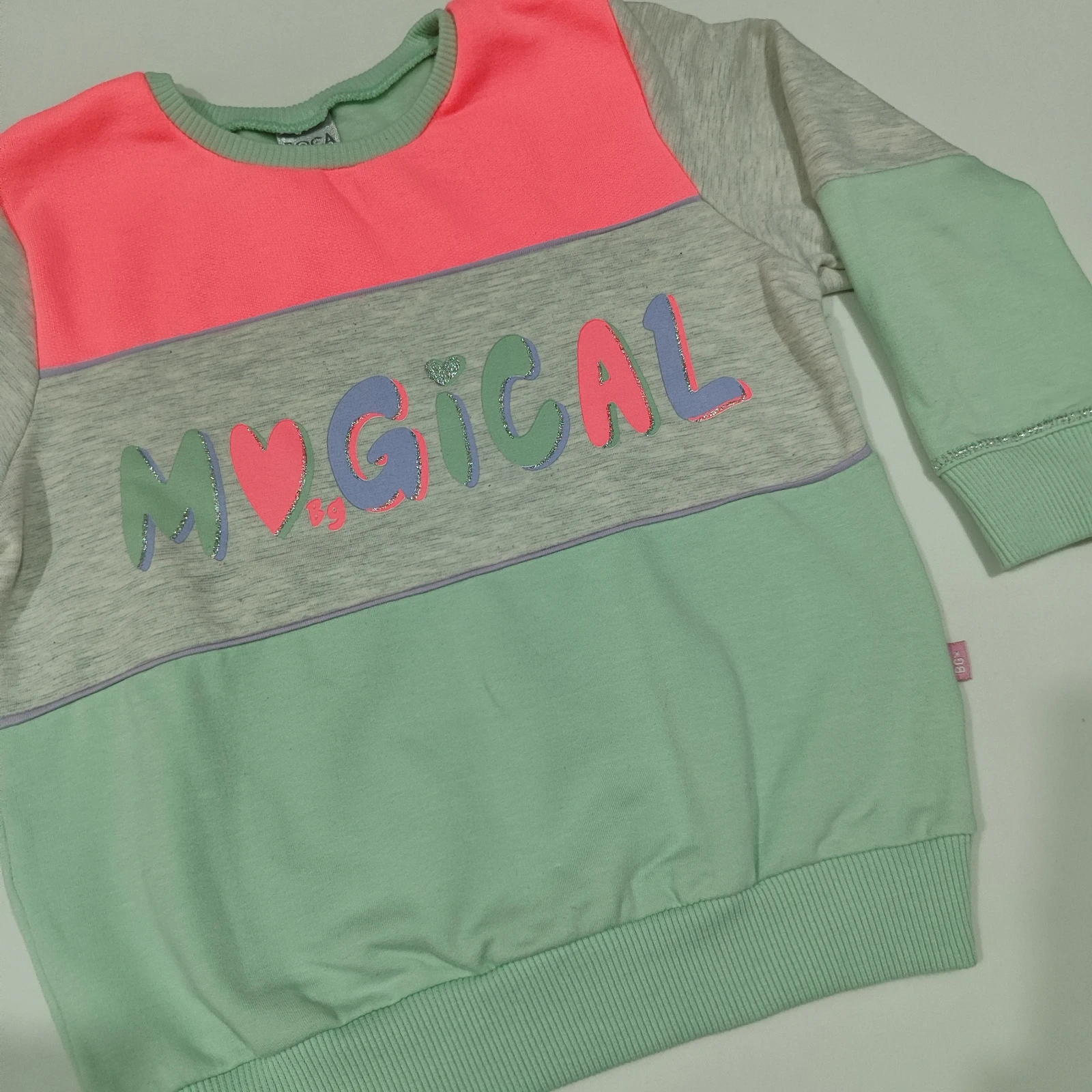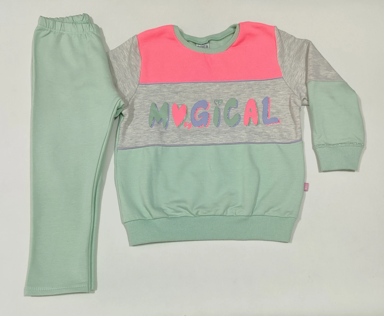 Conjunto Moletom Infantil MAGICAL: 2 peças em tecido macio e quentinho, blusa color block com estampa MAGICAL e calça em tom pastel. Forro suave, caimento confortável e cós elástico garantem liberdade de movimento para brincadeiras e atividades diárias. Ideal para dias frios, escola e passeio, une conforto, praticidade e estilo divertido para meninas.