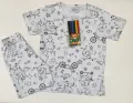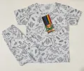 Conjunto de Pijama infantil 2 peças: camiseta de manga curta e calça com estampa divertida de monstros, bicicletas e estrelas. Tecido macio, suave e respirável que oferece conforto durante a noite e momentos de relaxamento em casa. Cintura elástica para ajuste seguro, costuras reforçadas e fácil de lavar. Ideal para crianças que gostam de brincar antes de dormir. Perfeito para presentear.