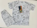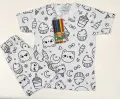 Conjunto de Pijama infantil 2 peças: camiseta de manga curta e bermuda, com estampa divertida em preto e branco. Tecido macio, suave e respirável, proporcionando conforto durante a noite e momentos de brincadeira antes de dormir. Ideal para crianças que gostam de desenhar e imaginar, com liberdade de movimento. Inclui um kit de canetas coloridas para incentivar a criatividade na hora de descansar.